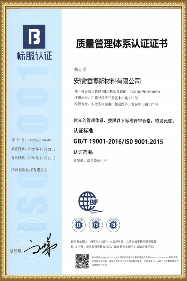 Anhui Hengbo Nieuw Materiaal Co., Ltd. werd opgericht in 2017 en houdt zich voornamelijk bezig met: PET-polyesterfilm, PET-releasefilm, beschermfolie.